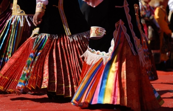 若尔盖县大型的宗教活动,有多种宗教元素得以展现,群众前往朝拜听经,场面壮观。