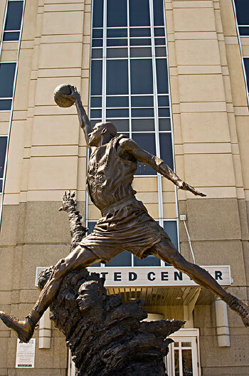 芝加哥公牛队绝对是在全球拥有最高知名度的NBA球队。因为“飞人”迈克尔·乔丹(Michael Jordan),NBA历史上最伟大的球员,早已把身披公牛队23号球衣、轻灵而又霸气十足的身影,定格在每一个球迷脑海里。 芝加哥公牛队的主场地在联合中心(United Center),迈克尔·乔丹的 雕像就位于体育馆的东面。这里同时也是芝加哥冰上曲棍球队的主 场,同时还经常举办各种音乐会等。