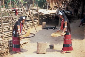 每年农历八月十四是传统新米节,这天全寨人聚集村寨广场举行传统的“剽牛祭祀”、迎新谷、吃新米、斗牛、摔跤、打猎、拉木鼓等活动,傍晚,他们燃起篝火、敲响木鼓、鸣放礼炮、吹起芦笙、竹笛,跳起传统木鼓舞,举行打歌狂欢活动,年轻人更是利用吉日寻找知音、传播爱情,以示天长地久,节日气氛异常浓烈。