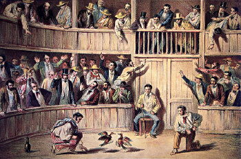 在古巴的国营斗鸡场里,斗鸡纯属娱乐活动,胜了没有奖金,观众们也不赌博下注。斗鸡比赛的进行时间不等,有的很快结束,有的则要一二十分钟方见分晓,失败的一方常常被啄死,获胜的也伤痕累累。