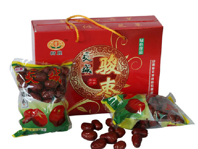 西四大名枣之一,誉为“枣后”,素有“八个一尺、十个一斤”之称。骏枣果大肉厚、质脆味甜、营养丰富、用途广泛。枣肉可提取食用香精,又可入药,有补血益气、安神养胃、健脾抗癌之功能。骏枣形态独特,呈瓶形或上细下粗的圆柱形。色泽深红,皮薄肉厚,核小果大,脆甜味香,果肉重量占总重量的95%以上,故有“八个一尺,十个一斤”之说。此枣味甜质脆,生食制干均优。