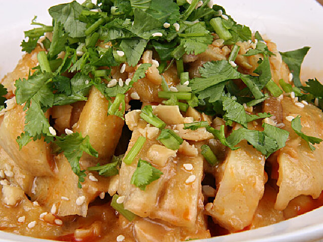 在古蔺县城的大街小巷,到处可见出售麻辣鸡的摊点.唯“聂墩墩麻辣鸡”尤其出名,为古蔺麻辣鸡的正宗.其特点是选料严格,工艺考究,香气扑鼻,肉质细嫩,皮脆脱骨,咸淡适宜,麻辣得当,凡品尝者均赞不绝口.喜欢川味的客人来到古蔺,都要品尝一番