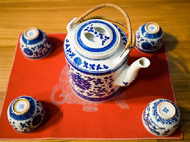 这龙嘴大铜壶不仅具有上述实用功能,更是一件十分精美的工艺品.铜壶上部和下部各有一圈铜饰花纹.壶嘴和壶把的上方镶饰着一条铜龙.有的铜壶壶嘴饰一大龙头,壶把就是由一条龙构成.龙须、龙爪、龙鳞清析可辨.龙嘴上伸出的两根龙须尖端有两个红绒球,随着冲茶汤师傅倾壶冲水的动作而颤动不已.人们还没有品尝美食“茶汤”的时候,就已被这奇特的美哭龙嘴大铜壶和冲茶师傅的精采表演所陶醉了