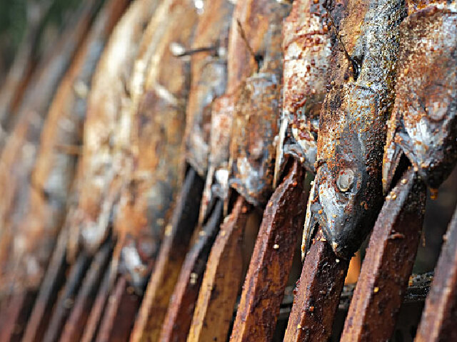 柴鱼是熬汤圣品,好吃的柴鱼需以新鲜的鲔鱼制成,而成功港因黑潮的缘故,是岛内少数可供应当日鲜鲔的渔港.鲔鱼入港后,即刻去头尾、除骨,仅采腹部后方的肌肉制成柴鱼,因可资利用的部位极少,柴鱼也就弥足珍贵.取得鱼肉后先要蒸熟,千万不可用煮的,否则养分尽释汤汁中,且肉质糜烂不利制作;鱼肉熟透后,再以柴薪文火炭烤10余日,待水分蒸干后,即成为外貌黝黑、坚硬如石的柴鱼块,食用时再以机器或刨刀削成薄片,就是一般所见的柴鱼片了.