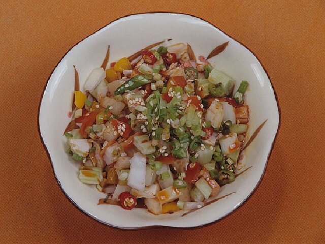 1、将兔肉切成4厘米见方的中块,入盆,加清水浸泡半个小时,去其草腥和红浆,用开水焯烫一下,洗净,控干水,入碗,加入酱油,精盐、料酒,拌匀,腌渍入味.