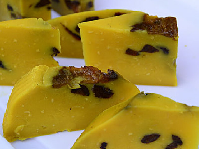 起糕的主要原料是红薯粉,配料是糖等。将水加入薯面粉中搅匀后放入大锅内蒸熟切成方块即可。糯香味美,不宜吃得过快,可配粥食用。老少皆宜,可宽肠通便,益气生津,治疗脾虚水肿。