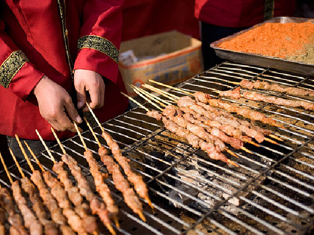 据史书记载景东已有500多年的烧烤历史了,已发展为一道地方名菜.有烤牛肉、羊肉、猪肉、鸡肉、鱼肉、洋菜、韭菜、茄子等,其中有名气的是火烤猪和火烤乌骨鸡.