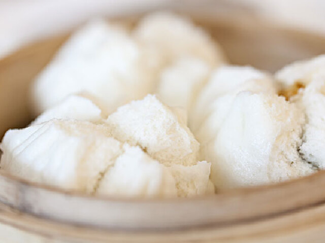 广州叉烧包是广东具代表性的点心之一,是粤式早茶的“四大天王(虾饺、干蒸烧卖、叉烧包、蛋挞)”之一.以切成小块的叉烧,加入蚝油等调味成为馅料,外面以面粉包裹,放在蒸笼内蒸熟而成.叉烧包一般大小约为直径五公分左右,一笼通常为三或四个.好的叉烧包采用肥瘦适中的叉烧作馅,包皮蒸熟後软滑刚好,稍微裂开露出叉烧馅料,渗发出阵阵叉烧的香味