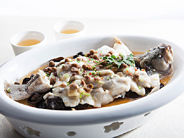 ③洒上盐、味精及适量清水于碗内.将鲈鱼放锅中,隔水蒸30分钟即可