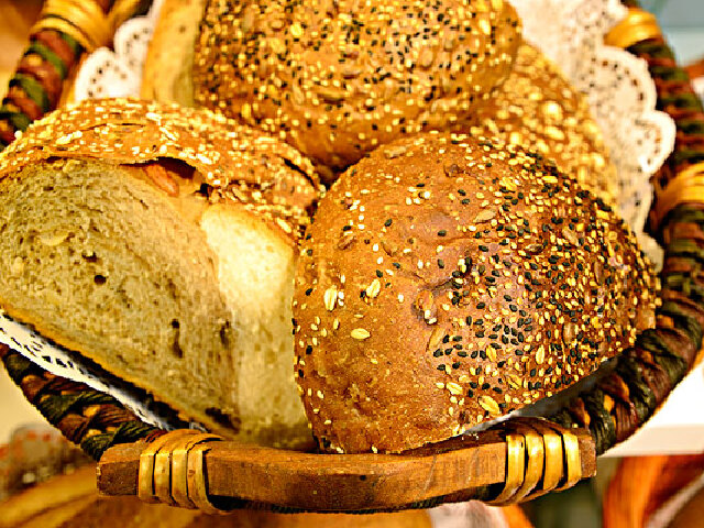 大面包,又叫大列巴(列巴是俄语面包的音译),由俄罗斯传来.被称为哈尔滨一绝,这种大面包为圆形,有五斤重,是面包之冠.味道也别具芳香,具有传统的欧洲风味.出炉后的大面包,外皮焦脆,内瓤松软,香味独特,又宜存放,是老少皆宜的方便食品.秋林牌大面包沿用传统工艺,烘烤一小时左右外壳微焦而脆,内瓤松软可口;用酒花发酵,使面包具有诱人的酒花芳香;传统三次发酵工艺,使面团发酵充分,风味独特