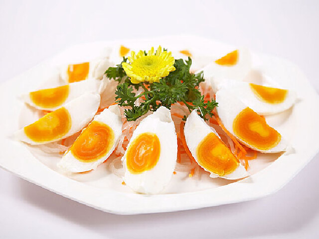 桓台特产金丝鸭蛋:自古以来,马踏胡上鹅鸭成群.金丝鸭蛋已负盛名.鹅鸭平素以湖中的蛤蜊为食,所产鸭蛋品质好,色香味独具特色.腌制蒸熟后,可见蛋青蛋黄相交处,有蛋黄油圈隔,似缕缕金丝绞缠,其味佳美,蛋油香而不腻,肉质砂不噎喉,金丝鸭蛋由此而得名.过去曾是皇家贡品.金丝鸭蛋民间又叫缠丝鸭蛋.产于临淄大路家庄一带.古代临淄泉水众多,河汊交错,近水人家多养鸭.大路家庄是安次水注入?水(今乌河)之处,河内多产螺丝以及鱼、虾等.鸭食之,所产之蛋“卵黄层层,紫赤相间”.剖之,如金丝缠绕,其味异常.如盐渍近月时间,煮熟刀切时,黄油顺刃流出,入口有奇香.金丝鸭蛋过去少为外人所知.1957年中央卫生检查团到临淄检查工作,席间奉送每人一枚品尝,交口称善.此后金丝鸭蛋之名逐渐扬播于省内外