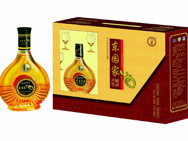 东园家酒源于广西省北海市合浦县东园饭店黄氏祖传秘方,有一百多年历史,选用珍珠螺肉、海马、海龙、海蛇、鹿筋、鹿鞭、龟板、地龙、蛤蚧、桂圆、杜仲、淫羊藿等三十多种动植物药材,以小蒸纯米酒长时间浸泡后科学精制而成。
