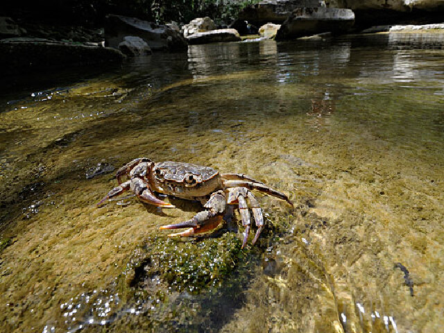 炎亭江蟹(即梭子蟹)此蟹为浙江炎亭的著名水产,素以个大味鲜而蜚声国内外市场.炎亭,位于敖江出海处,是寒暖流交汇地,饵料丰富,是江蟹得天独厚的繁殖场所,故盛产江蟹.这里的江蟹,产量大,质量好,一般个重250克~300克,大的有500多克,且体肥肉满,肉多,脂膏肥满,味鲜美,营养丰富.每百克蟹肉含蛋白质14克、脂肪2.6克.鲜食以蒸食为主还可盐渍加工“枪蟹”、蟹酱,蟹卵经漂洗晒干即成为“蟹籽”,均是海味品中之上品.产季3~5月和9~10月为生产旺季,养殖品种,春节边为收获旺季.地方名梭子蟹、枪蟹、海螃蟹、海蟹、三点蟹、海虫、水蟹、门蟹、小门子、盖鱼、童蟹、飞蟹