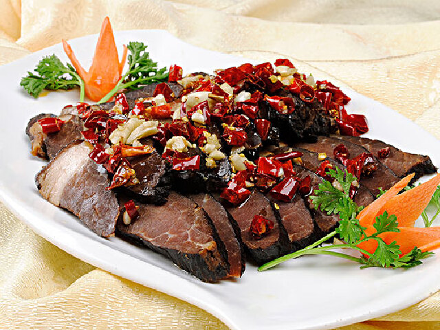 土家腊肉是湖南湘西张家界的特产.湘西人有一种隔年熏腊肉的习惯.每年临近年关,杀了年猪将正肉、猪头、猪脚全部用于做腊肉.首先将鲜肉砍成五六斤一块的长条,然后揉盐和各种香料后放在大缸里(决不能用水洗)腌四至六天,为了使肉入味均匀,隔一两天就要把肉翻一遍.待盐及香料浸进肉内,再高高的穿挂到火坑的房梁或灶头上,以烟火慢慢薰干.薰制得比较好的腊肉一般可保存半年以上.如用桔子皮薰烘,腊肉油中透红,红中透亮,不见烟灰,颜色更显好看