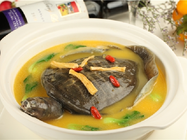 淮安市东南水乡以鱼米著称,水乡湖面滩涂广阔,是甲鱼生长繁殖的天然优良场所.朱桥镇早在本世纪内30年代初就以烩制甲鱼著称,距今已有五六十年的历史.朱桥甲鱼的烩制方法:取甲鱼一只,以甲盖青色为佳,用开水去皮、洗净、剖腹、去内脏、入锅汤、拆骨、切成肉块,再下锅油炒,拌以姜葱、酱醋,然后取出,放入鸡汤,煮沸后放入淀粉勾欠,装碗时放入皮蛋、胡椒即好.此菜营养丰富,肉质细嫩、味道鲜美,实为筵席之珍品.此外,还可清蒸、清炖、红烧,风味各异