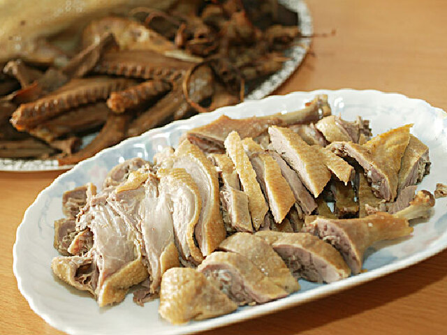 南胜咸水鸭有数百年的制作历史,因产地在南胜镇而得名,是平和县著名的土特产.南胜咸水鸭有一套独特精细的加工工艺,采用本地产名鸭,经放血去毛,开膛除脏,通风沥水,抹盐堆腌,撑鸭造型,晒后吊晾等数道工序,环环相扣,数日即可制成.咸水鸭吃法简便,吃时洗净,清水蒸之即可,若再乘热洒些红酒,则清香扑鼻,风味更美.其风味有别于他处,热销于邻近各县.随着南胜咸水鸭市场的热销,传统的南胜咸水鸭加工业发展很快,仅南胜镇、小溪镇就有十数家,成为一个新兴的食品行业