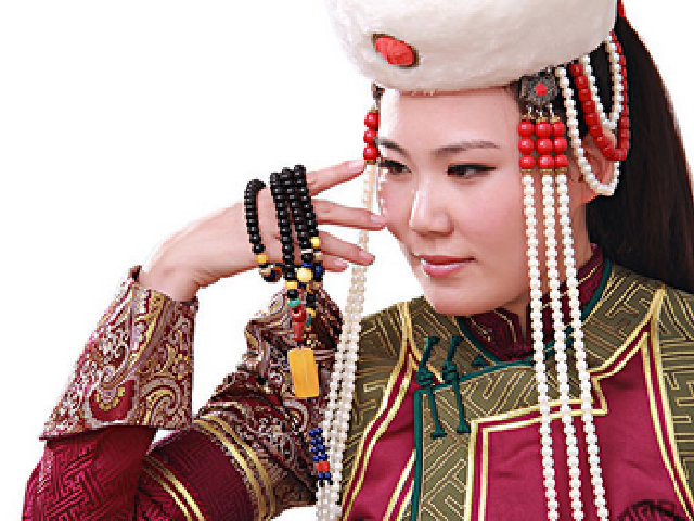 蒙古族头饰很美丽、华贵,一般用玛瑙银链珊瑚玉石穿缀而成。蒙古族服饰反映了蒙古族悠久的传统文化,至今仍然保持着旺盛的生命力。