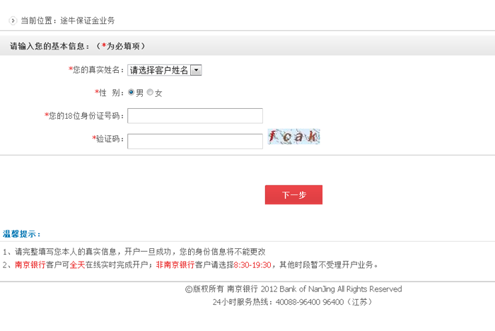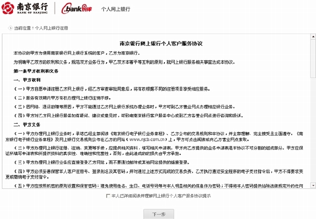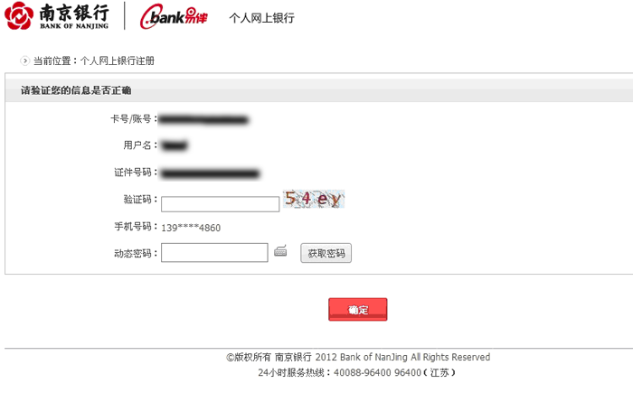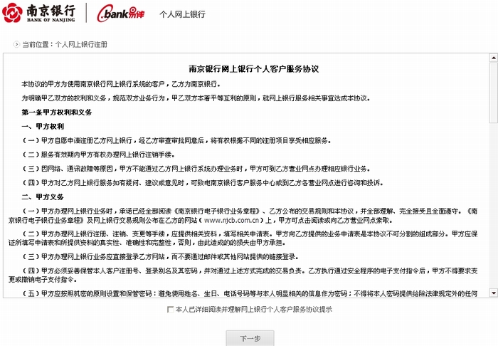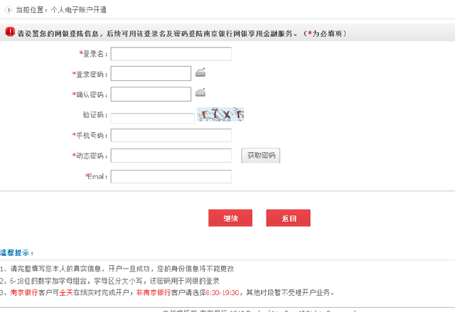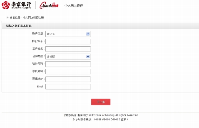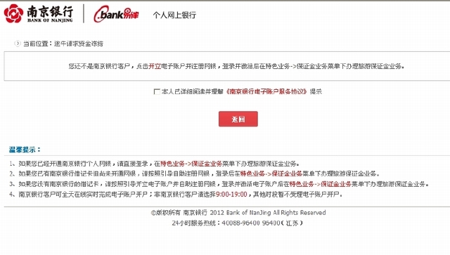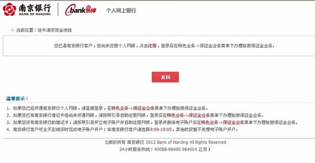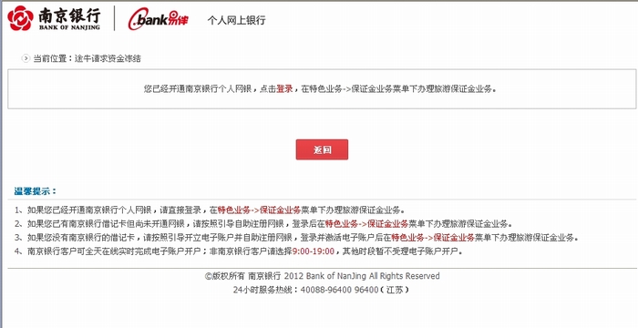 情况二:已有南京银行借记卡,但是没有开通网银,引导进入自助注册的流程