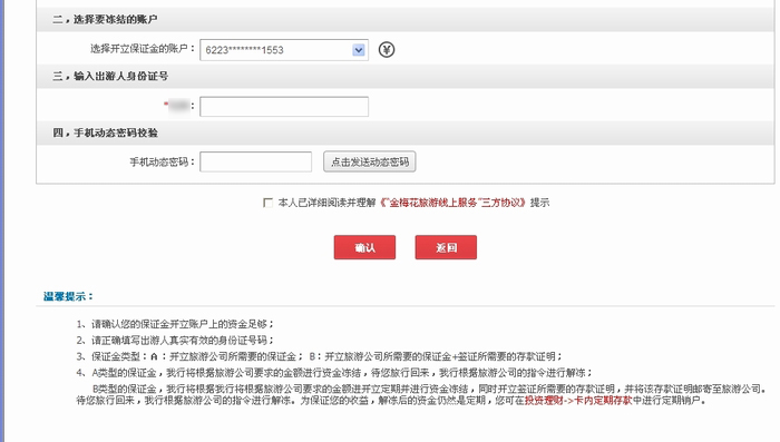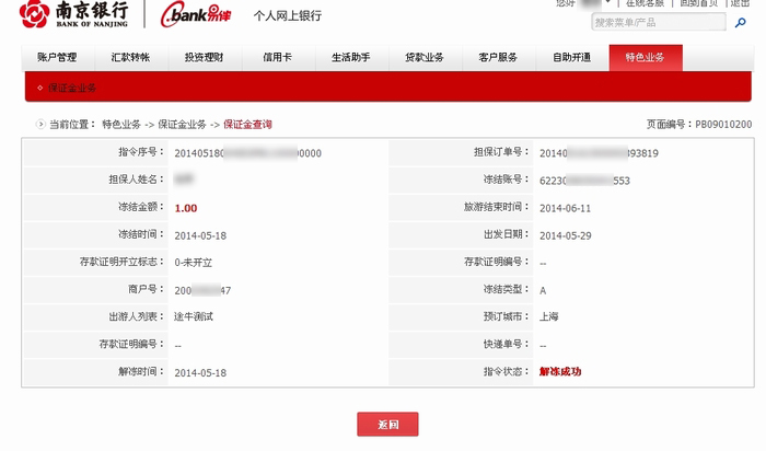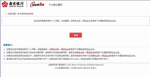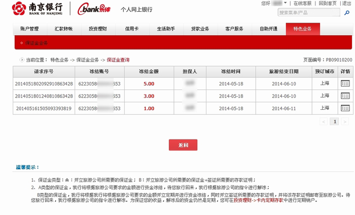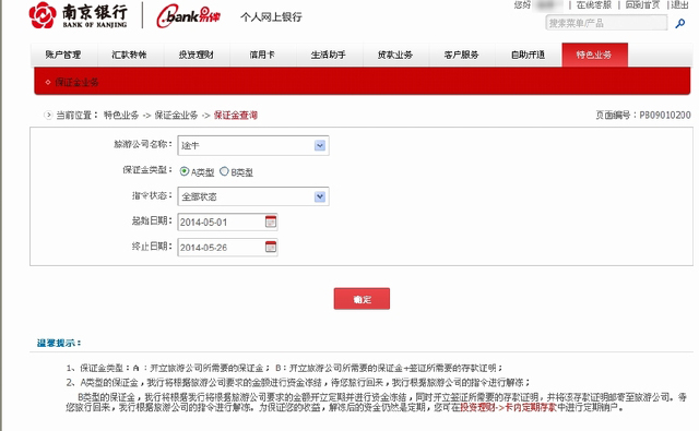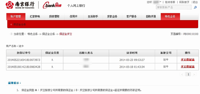 A型保证金:南京银行将根据旅游公司要求的金额进行资金冻结,待您旅行回来,我行根据旅游公司的指令进行解冻并短信通知。