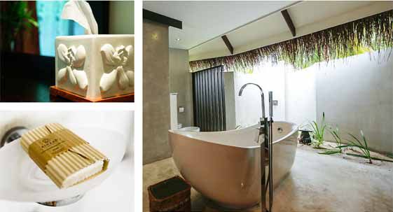 沙滩别墅位于岛屿珊瑚沙滩的边缘,私人的空间从海滩一直延伸到泻湖。客房宽敞舒适,卫星电视、CD/DVD、播放器、高速因特网连接、别墅内酒吧、茶和咖啡机、宽敞的开放式浴室及淋浴设施,所有设施一应俱全。在别墅前的沙滩上,可以欣赏到美丽的日落,或者观看一望无际的浪漫星空。