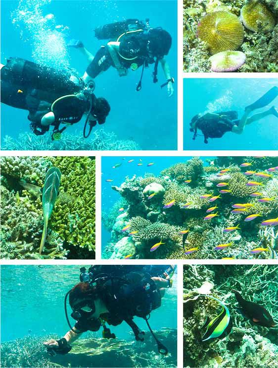 穿上你的装备潜入水中,尤其是和心爱的人手牵手在海下畅游,那种幸福感是难以言表的,看到奇珍异鱼时一起惊叹,一起微笑,任凭五颜六色的热带鱼在身旁嬉戏,旗鱼、马林鱼、梭鱼……