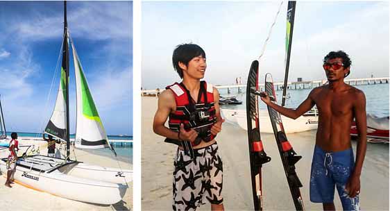 对爱好水上运动的人来说,在吉哈德岛上更是如鱼得水,这里的生态环境占有绝对的优势。尽管拥有丰富的设施和完善的服务,但是仍然保持着百分之七十的岛屿原始风貌,不受人为雕饰。清澈蔚蓝的海水和漂亮的浅海湾是最好的运动场,很多好玩刺激的运动在这里都能找到。 在吉哈德岛,摩托艇是很大众的一个项目,不需要很高的技能,却能享受到水浪带给你的最大感官刺激。紧紧地抱住摩托艇手,风在耳边呼呼作响,海浪飞花碎玉般的溅起来,拍打在脸上,一片大海在身边飞速掠过,被甩在身后。