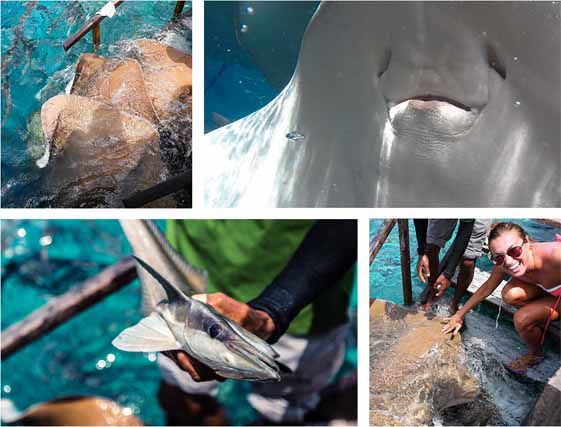 喂魔鬼鱼是一个备受宠爱的项目,每天早上10点左右,游客们可以跟着酒店的工作人员一起参加喂鱼活动,当食物靠近时,它们就会慢悠悠地聚集起来,你可以尝试亲自去喂魔鬼鱼,摸摸它们的头,会发现它们脸腮的部分像果冻一样,软软的很舒服。