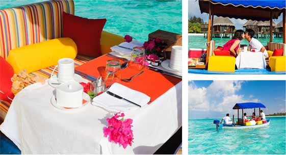 来到卡努呼啦度蜜月的情侣一定要体验kuda 多尼浪漫早餐,这将是人生中最浪漫的早餐。穿着美丽的裙子,和爱人坐在小船上,徜徉在无边无际的大海中,享用着美味的早餐,尽情感受着这浪漫的甜蜜时刻。