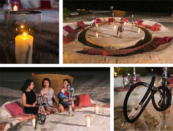 在这个充满阿拉伯风情的沙滩酒吧,可以度过一个美妙的夜晚。这个酒吧临海而建,可以在沙滩上就地制作沙子做的桌椅,三五好友围着浪漫的烛光一起畅聊人生。此外,还可以体验一下有名的阿拉伯特色水烟。水烟是一种起源于中东地区的烟草制品,它所使用的烟草是与蜂蜜或者各种水果混合而成,有苹果、柳橙、凤梨、草莓,甚至咖啡、口香糖和可乐的口味。