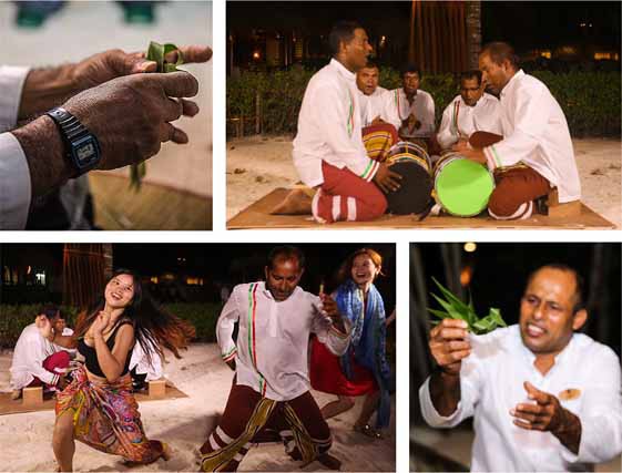 在旅行中,让人感动和铭记的不只有风景,更是当地人骨子里透出的热情和善良。热情的吉哈德岛上,夜里的空气流动都好像带着旋律,因为这里几乎每天晚上都会有不同主题的活动,传统歌舞、卡拉OK之夜、鸡尾酒晚宴等,伴着当地的音乐和舞蹈,让你在进餐的同时带着一种舒缓的随意感。 马尔代夫的舞蹈并不复杂,风格奔放、自然,充满了原始风味。一般伴奏的乐器只有手鼓,当地人将手鼓表演叫做BODU BERU,腰间裹着一条长长的花布——纱笼,时不时地会邀请游客共舞。曲奏风格类似于非洲的音乐,又似多元文化的融合,演奏起来激情洋溢,动作也自由、随意,带着浓浓的异域情调。