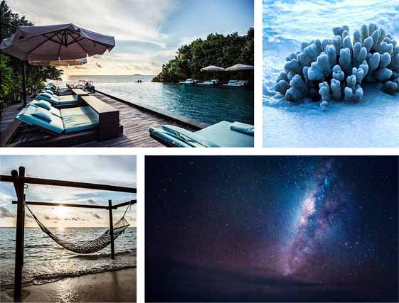 “面朝大海,春暖花开”在马尔代夫成为了现实,把窗帘打开,就能看见沙滩和大海。只要兴致一来,就可以随时下楼,沿着数百公尺及膝的海岸,追逐或喂食清澈海水中缤纷的热带鱼,让海水一波波袭来,望着白云蓝天或繁星夜空,感受重归自然的安静。