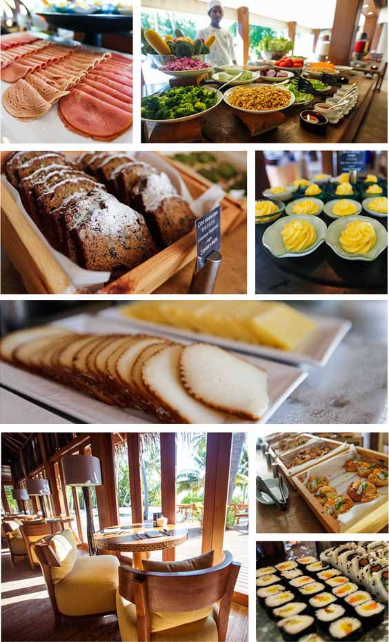 卡努呼啦岛提供的菜肴有着意想不到的花样……浪漫美食、娱乐放松美食、纯粹为开心而准备的美食,在这里应有尽有。餐厅提供早晚餐自助餐,有折叠式窗户、茅草盖的屋顶,室外用餐区可观赏到主游泳池和泻湖,供应一流的欧式和亚式菜肴。晚餐国际自助餐菜肴包括:马尔代夫本地料理、印度料理、印度尼西亚料理、日本料理、东方菜肴和欧式菜肴。自助早餐也有多种菜式,煎蛋、薄烤饼和饼干等,有超过 15 种面包或糕点,让人目不暇接。