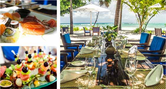 度假村共有3间与众不同的餐厅和1间酒吧,并且提供中餐,吃不惯西餐的客人也可以在这里大饱口福。度假村还聘请了中国的高级厨师,烹饪美味的中国特色晚餐,让国人在身体放松的同时,尽享传统美食。除了食物是中国特色美食,餐厅也充满中国特色,到处能看见大红灯笼和中国结,让人倍感亲切。