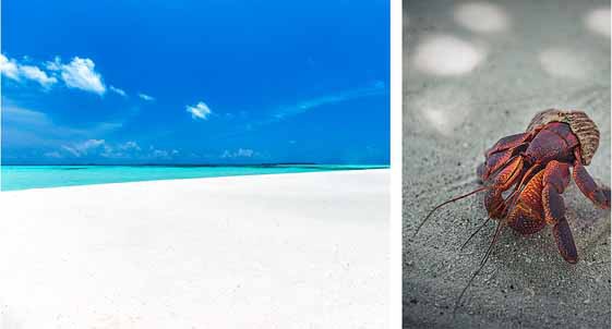 沙屋前后,经常能看到缓缓爬行的寄居蟹,墙上有壁虎,树上有蜥蜴,偶尔在还可以看到变色龙……无处不诉说着这座岛的生态环境之可贵,随处可以看到奇花异草,给你带来小小的惊喜。吃过晚饭,沙屋前沿海散步,眼前一片一片水浪扑面而来,夹杂着海洋的气息,跟心爱的人依偎在洁白的沙滩上,静静地看着夕阳,放纵所有的感官迷离在这座神奇的海岛,那一刻,满满的幸福。