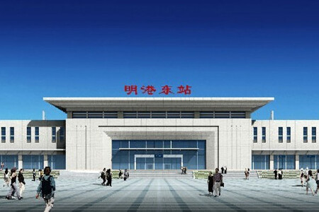 明港东站在河南省信阳市明港镇东部,是河南境内唯一的非地级市车站,为小型中间站,2台4线(即2个站台、4条轨道),2008年12月1日开工,2011年12月31日前建成,2012年9月28日,长1800米,宽55米。距离明港机场仅3.5公里,可以与明港机场形成铁路运输和航空运输的对接。