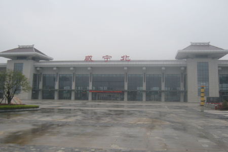 咸宁北站为武广客运专线第二站总投资1.6亿元、总建筑面积9618平方米的咸宁北站,包括站房和站台两部分,其中,两层的车站站房建筑中,二层是车站的办公专用区域,一层为旅客乘车专用区域。作为主要使用功能区的站房一层,融售票厅、候车厅及进站集散厅、小件寄存厅、出站集散厅于一体,左侧为出站厅,右侧为售票厅,两侧门阙塔则是商业区,站房与站台由地下通道连接。