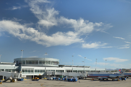 2、在机场到达大厅的左手,有SHUTTLES/LIMOUSINE标识。麦卡伦国际机场共有灰线(GRAYLINE)等6家公司经营往来机场及各大酒店的巴士及专车服务。运营时间一般为从早上6-7点至午夜最后航班到达。前往The Strip上各酒店的车费:最低5美元/单程,最低9.5美元/双程。