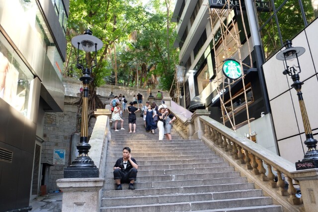 《喜剧之王》中柳飘飘出现场景,张国荣《有谁共鸣》的MV那条长长的楼梯道,就是都爹利街啦,都爹利街位于中环皇后大道,南端一直到雪厂街,而经常出镜的那条长长的石阶,其实是由花岗石砌成的,而台阶上那四盏煤气灯,可是香港仅存的4盏呢,现在已经被政府定位香港法定古迹了。