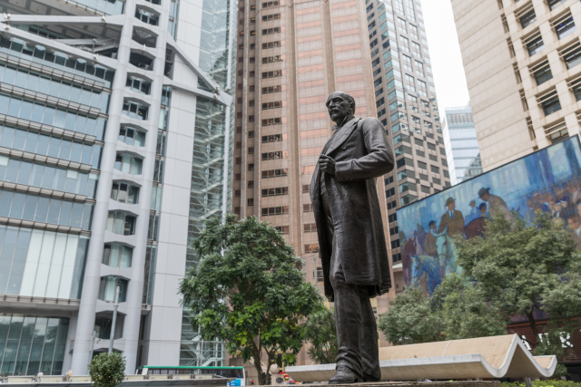 如果你到了皇后像广场,只看到一座汇丰银行总经理昃臣爵士的雕像,千万不要有疑问,因为女王铜像在二战时期被日军运走,战后才被运回香港,改放在维多利亚公园里。