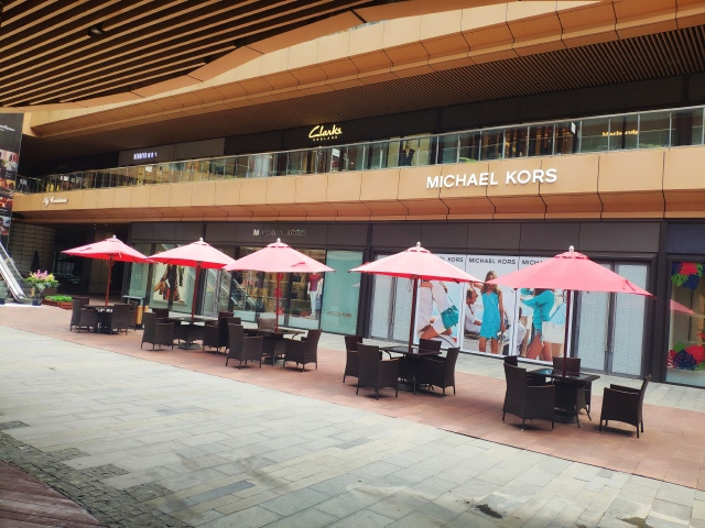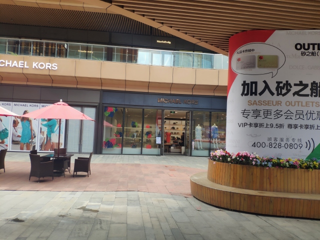MK是砂之船比较火的店铺之一,也是规模较大的奢侈品店铺之一。由于经常有活动,而且优惠力度比较大,所以店铺活动期间常常会排起长队。