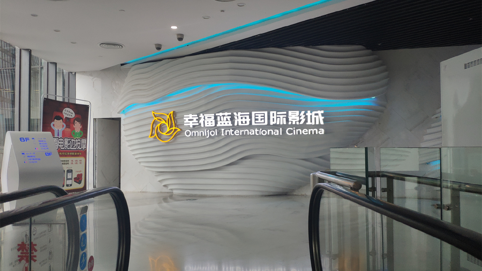 位于荔枝广场6楼的幸福蓝海国际影城是旗舰店,面积近8000㎡,共设有7个影厅,含一个MX4D影厅和两个VIP影厅,可容纳约800多名名观众同时观影。影城全部采用双机4K设备,让观众能在观影中身临其境,体验与众不同的立体观影感受。