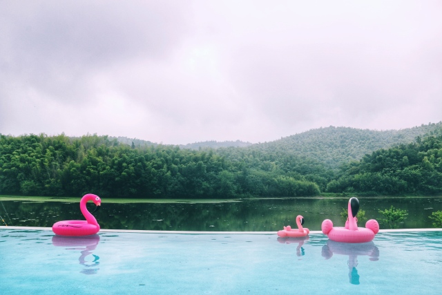 原舍•平湖特别红的就是这个朝湖的泳池了。巨大的无边泳池,面朝湖水,设计精致,还配备了可爱的游泳圈远处青山环绕,一群孩童在其中嬉戏玩乐,微风中也充满欢声笑语。