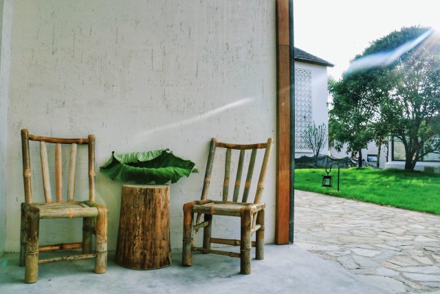 独闲是独院的套房,面朝湖景,设施舒适。原木的小桌可以品茶聊天,红砖墙面却也不严肃。一个超湖的飘窗,独享风光。
