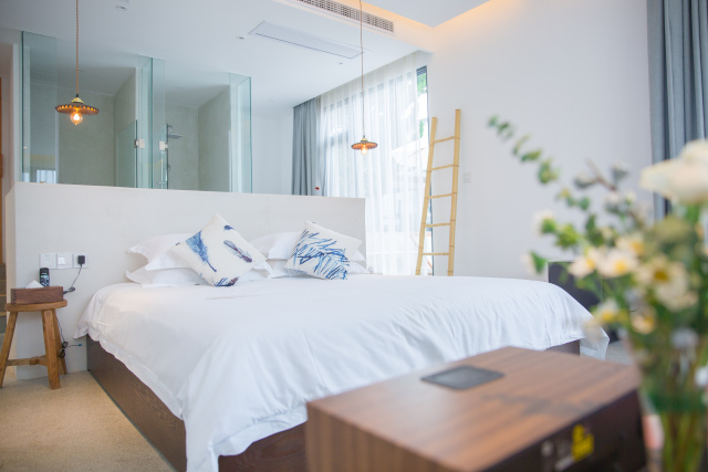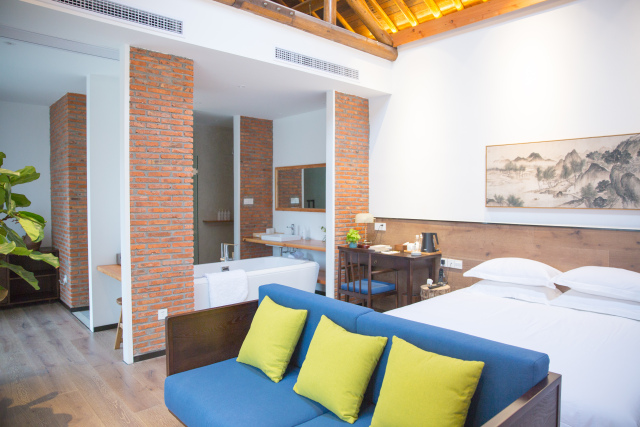 扶摇/乘风带有轻奢度假的风范。房间内带有非常棒的浴缸,还有有着户外露台或小院,可眺望远处山景。适合两人居住。