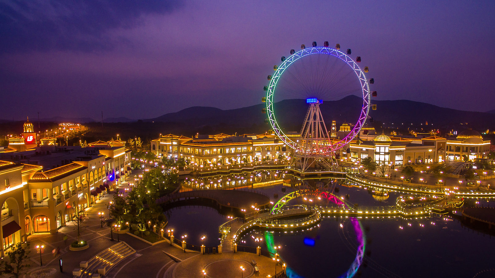 坐落在中心广场上直径63米的摩天轮是汤山百联奥特莱斯的标志。如果你要来这儿购物,不妨去坐一下摩天轮,汤山美景尽收眼底。