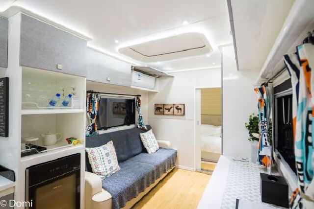 每间房车内均设有空调、冰箱、Mini-bar、沙发、24小时不间断热水、电磁炉等设施。