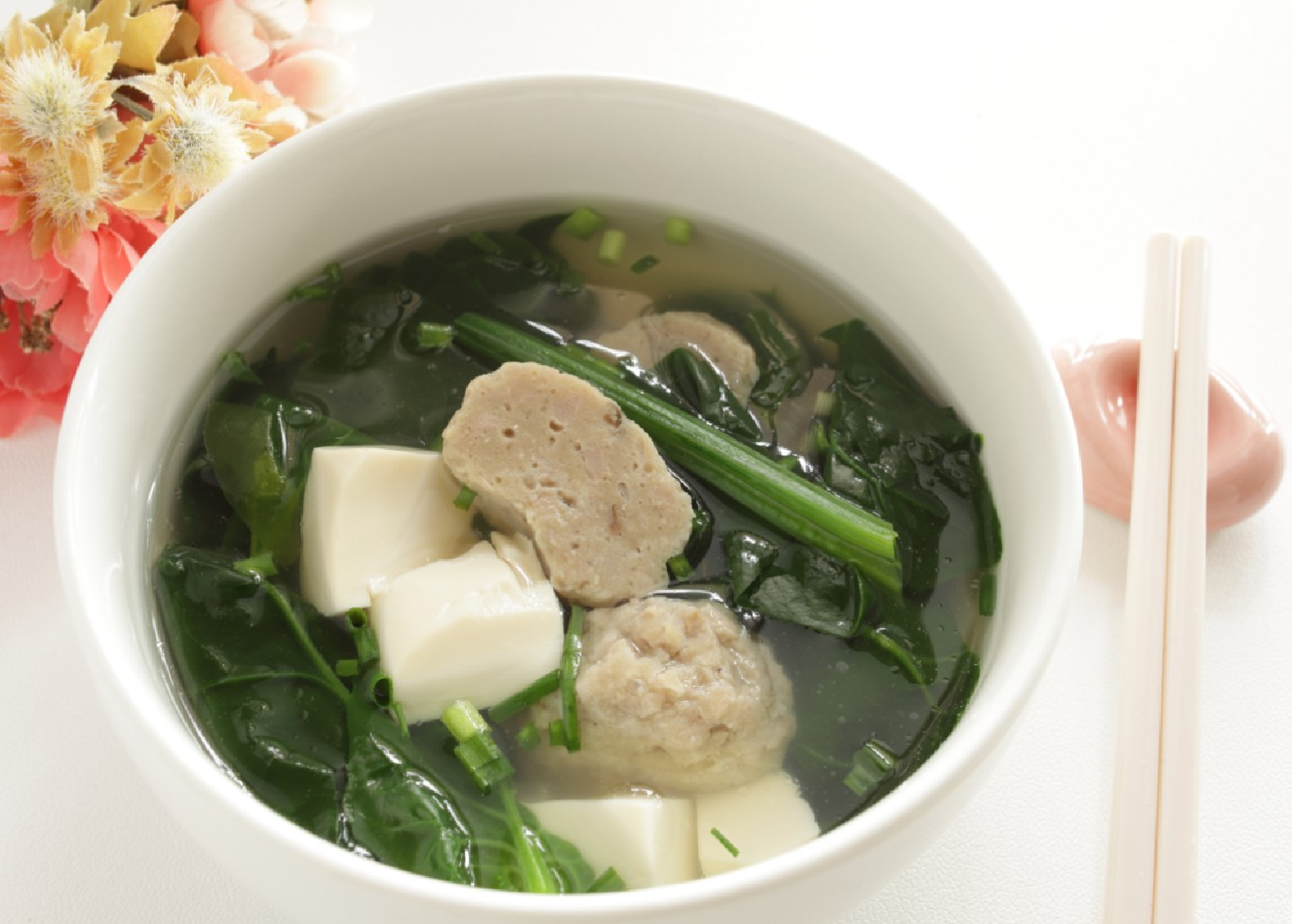 菠菜鱼丸汤、红烧野鸭、红烧野鸡