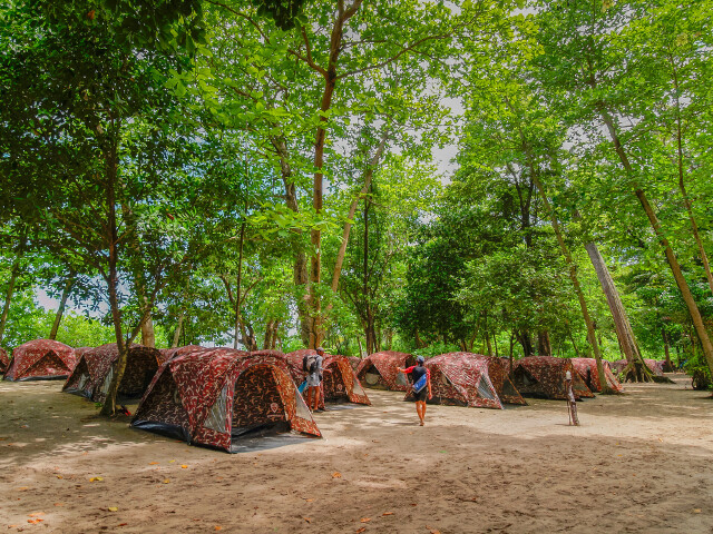 帐篷屋主要集中在4号岛上,8号岛上也有一些,一般代理费用要6000泰铢以上,有的攻略说可以讲价到5250-5700泰铢。住帐篷会提供晚餐,手电则是必备的“家用电器”。提供一个睡袋和防潮垫,晚上入睡不会觉得冷或者热,不过蚊子可能是你需要地方的敌人。