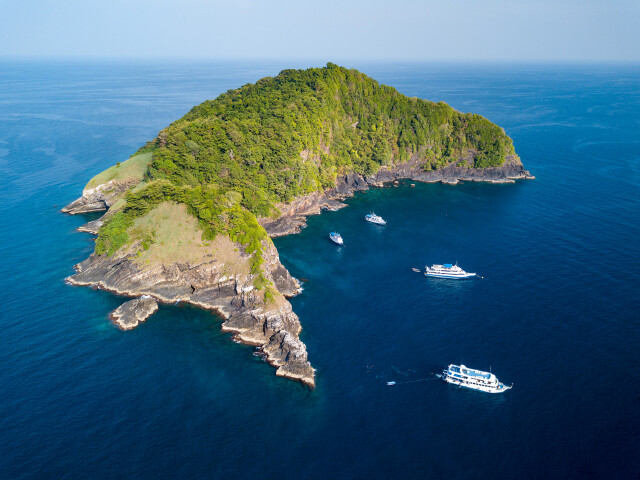 岛屿周边海底风光独特,有着海底山峰、峡谷、岩洞等多彩的地形景色,还有大片适合浮潜的潜水区域,附近海域的珊瑚群景观仍保有原始自然风貌,让水性不佳的你也能一亲芳泽。