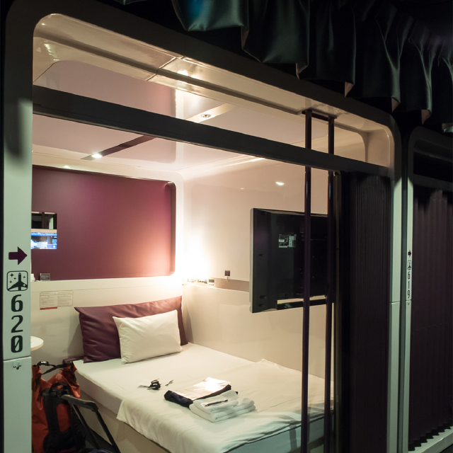 双层舱室:上下层胶囊,隔音及空间相对地较差一点,只能男性入住,位于酒店2楼和3楼。